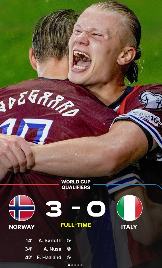Norwegia Mengguncang Italia dengan Kemenangan 3-0 di Kualifikasi Piala Dunia 2026